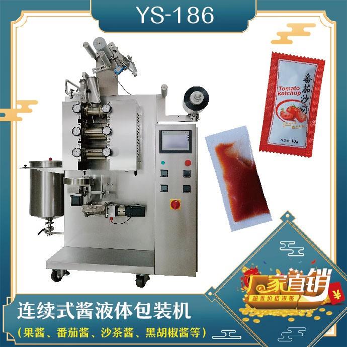 YS-186X 高速醬液體包裝機特 點(diǎn) Characteristic1、適用于食品、化妝類(lèi)粉劑、液體、醬體等物品的計量包裝。The machine is suitable for measurement packing of food,cosmetic,powder,liquid,sauce and others.2、可自動(dòng)完成制袋、計量、下料、封合、分切、計數,可根據客戶(hù)要求配置打印批號等功能。All the works of bag m…