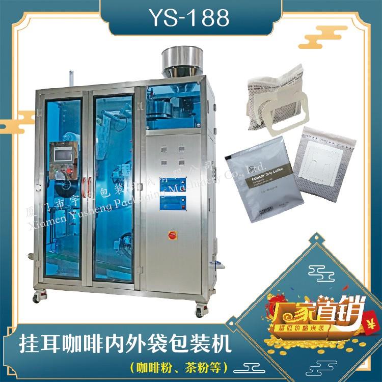 YS-188 掛耳咖啡內外袋包裝機(新框式)特 點(diǎn) 1、適用于咖啡粉、小顆粒狀物料。2、采用特定的掛耳式濾網(wǎng)、三邊封口、直接掛在杯子邊緣,咖啡沖泡效果更好,且袋型美觀(guān),目前國外市場(chǎng)非常流行。3、本機具有自動(dòng)完成制袋、計量、充填、封合、分切、計數、打印批號等功能。4、內袋為無(wú)紡布掛耳袋,沖泡方便且衛生。封口采用先進(jìn)…