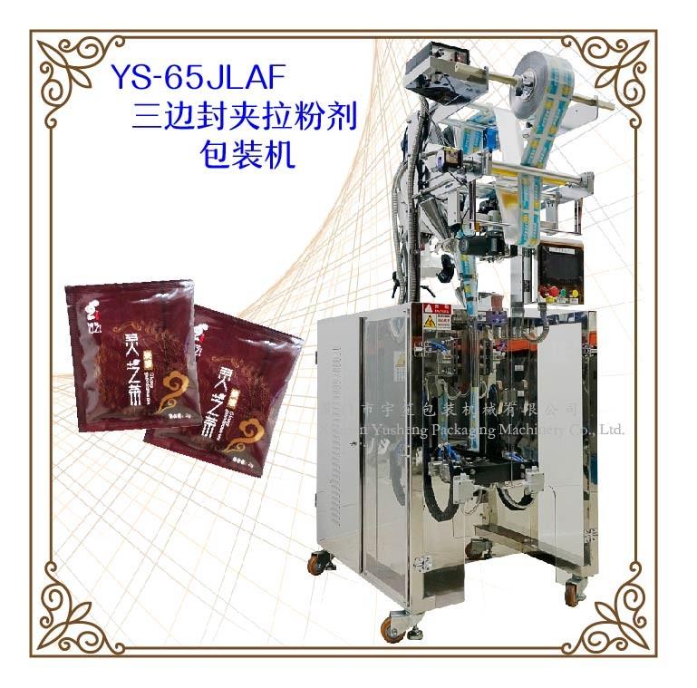 YS-65JLBF-Y 夾拉圓角粉劑包裝機特 點(diǎn) 1、適用于食品、醫藥、化工、化妝品行業(yè)中粉劑等物品的計量包裝。.2、可自動(dòng)完成制袋、計量、下料、封合、分切、計數、且可根據客戶(hù)要求配置打印批號等功能。3、觸摸屏操作,PLC 控制,伺服電機控制袋長(cháng),性能穩定、調整方便、檢測準確。智能式溫控儀,PID調節,保證將溫度的誤差范…
