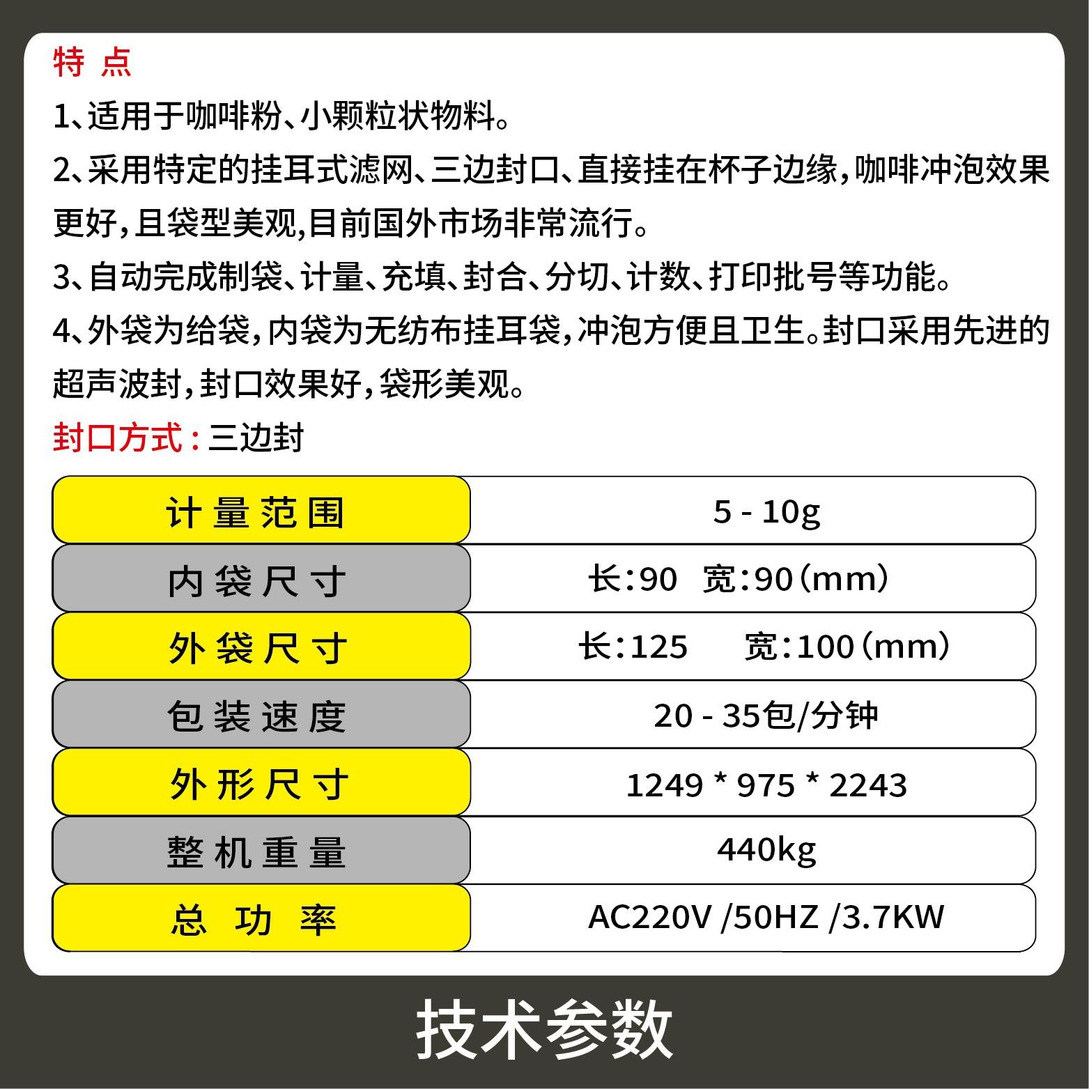 1、采用特定的掛耳式濾網(wǎng)、三邊封口、直接掛在杯子邊緣,咖啡沖泡效果更好,且袋型美觀(guān),目前國外市場(chǎng)非常流行。